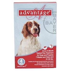 Advantage Red kills fleas on dogs fast. Advantage kills 98% of fleas within 12 hours and continues to work for up to one month per application. It also breaks the flea life cycle by killing flea larvae. Advantage can be used on puppies as young as 7 weeks old. Also, it is safe for dogs that are pregnant or nursing. Advantage is water-resistant, so it kills fleas even after shampooing and exposure to rain. Advantage is applied between the shoulder blades on dogs.Effective Flea Control . . . No Prescription Required!Guaranteed US EPA approved. Contains imidacloprid, the fastest flea preventive, which works within 12 hours Long-lasting Over-The-Counter formula keeps working for up to 4 weeks Easy-squeeze tube for easy application. Water-resistant formula stays strong through baths and rain.