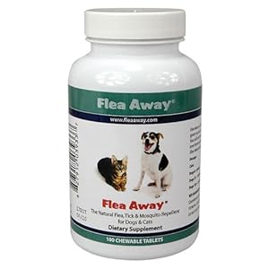 Flea Away is a vitamin complex, specifically formulated for dogs and cats. Flavored with real liver, your pet will love them! What makes Flea Away different from alternate flea repellents is that fleas don't get on the dog or cat's skin and bite before finding chemicals and going away. The pests simply stay away from your pet because of the odor (undetected by humans) that your pets skin gives off. With Flea Away your dog or cat's skin gives off a natural smell caused by the special safe mixture of vitamins. If your dog or cat has an allergic reaction to flea bites, then Flea Away is the way to go. The fleas, ticks and mosquitoes are naturally repelled before biting your pet. Dosage: Cats: 1 chewable tablet 1 time daily. Dogs: Up to 50 pounds - 1 tablet 1 time daily, 51 to 100 pounds - 2 tablets 1 time daily, 101 to 150 pounds - 3 tablets 1 time daily. Please allow 30 days of use before seeing results as product needs to be in the system.